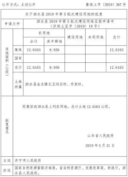 批復(fù)意見(jiàn):同意征收泗水縣上列農(nóng)用地,總計(jì)土地 12.6163 公頃。